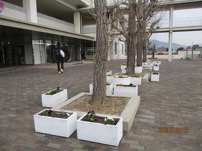 昨日文化・美化委員の生徒が校内にパンジー・ビオラを植えました。