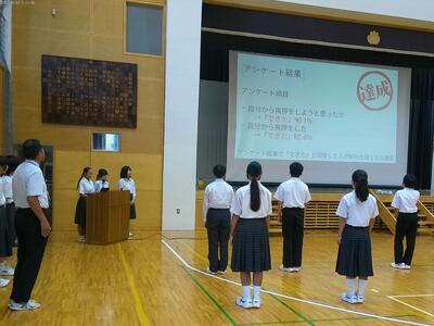 9月の目標について、生徒にアンケートを取り、目標達成度について発表がありました。