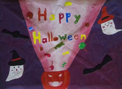 美術部の生徒が絵を制作して、校内エントランスに掲示しています。