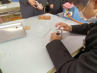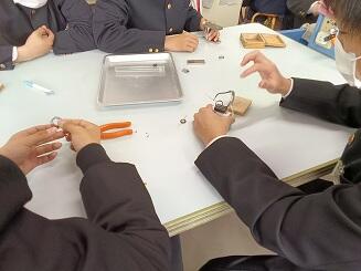 フレミングの左手の法則 投稿: 編集長 (02/16) カテゴリー: 2学年 令和8年2月16日 月曜日 2年生理科の授業 フレミングの左手の法則を学び モーターを製作しています。 ニクロム線、電池、磁石をを使って、ニクロム線をコイル状にして 回転する実験を行っています。 -
