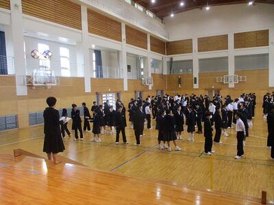 話す 投稿: 編集長 (08:40) カテゴリー: 今日の出来事 令和8年4月21日 火曜日 本日は学校朝会がありました。 校長先生の講話 校長の「話 笑 輪」から今日は話すについて講話されました。 生徒全員がペアになり、お互い3つの共通点を見つけることを話し合いしました。 相手に話す、相手の話を聞く事の大切さを話しました。 -